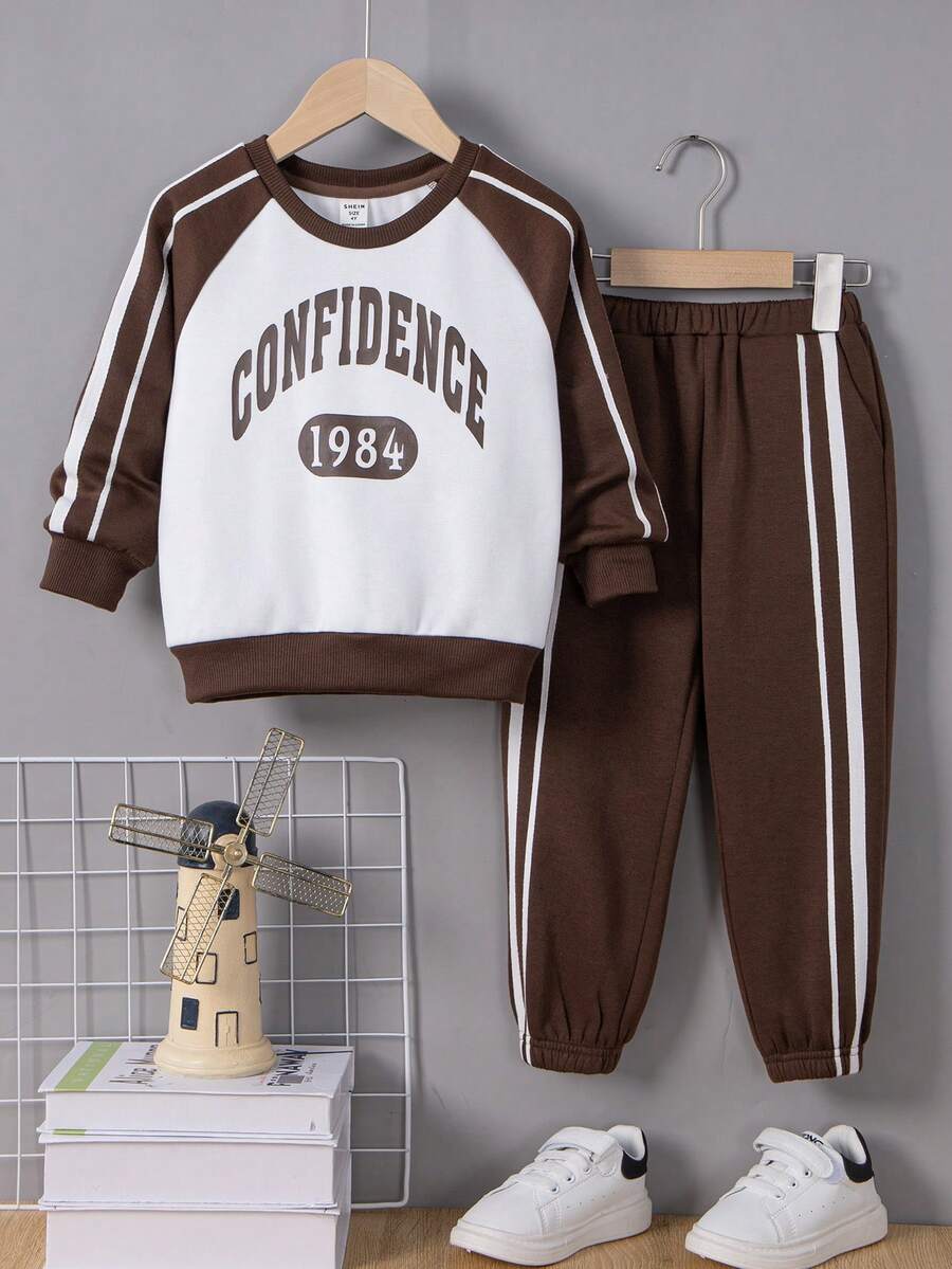SHEIN Kids SPRTY Young Boy Letter Graphic Raglan Sleeve Sweatshirt & Sweatpants