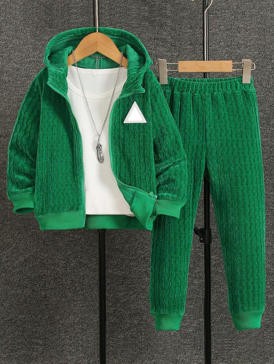 Young Boy Letter Patched Detail Hooded Jacket & Sweatpants Without Tee