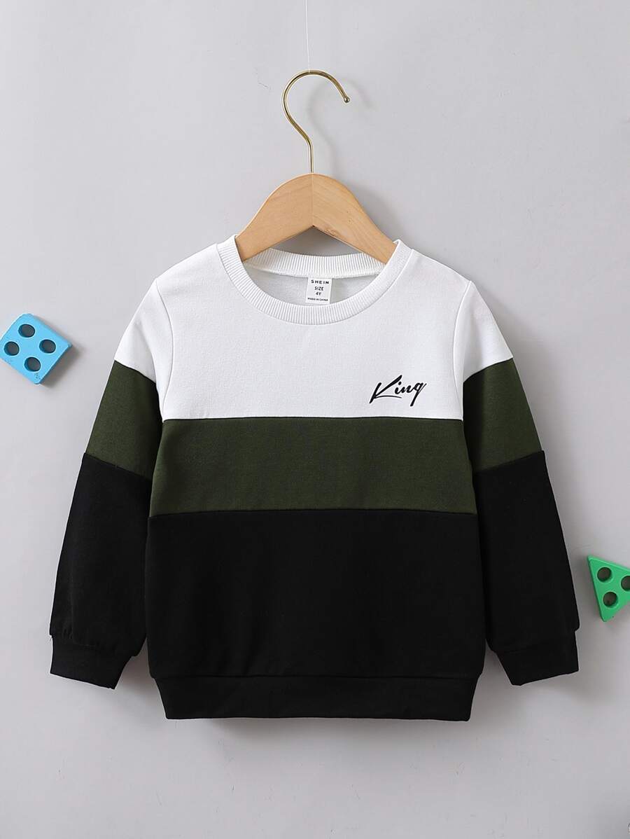 SHEIN Young Boy Letter Patchwork Casual Sports Round Neck Sweatshirt With Regular Sleeve For Autumn
