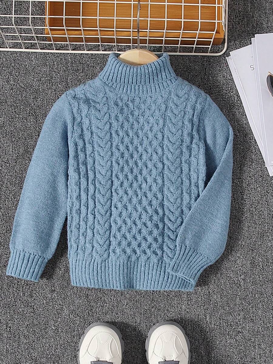 SHEIN Kids EVRYDAY Young Boy Loose Fit Casual Cable Knit High Neck Sweater, Warm And Versatile, Autumn, Winter