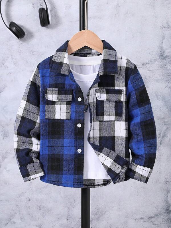 SHEIN Kids EVRYDAY Young Boy Plaid Print Flap Pocket Shirt Without Tee