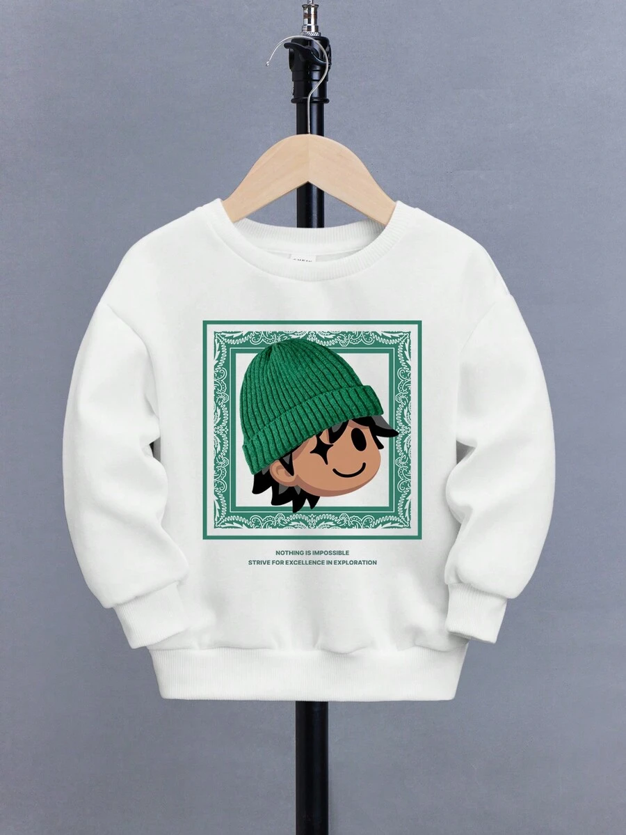 Young Boy Slogan & Figure Graphic Thermal Pullover