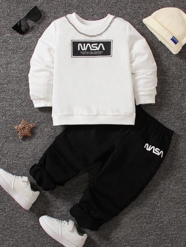 SHEIN Kids EVRYDAY Young Boy Slogan Graphic Sweatshirt & Sweatpants