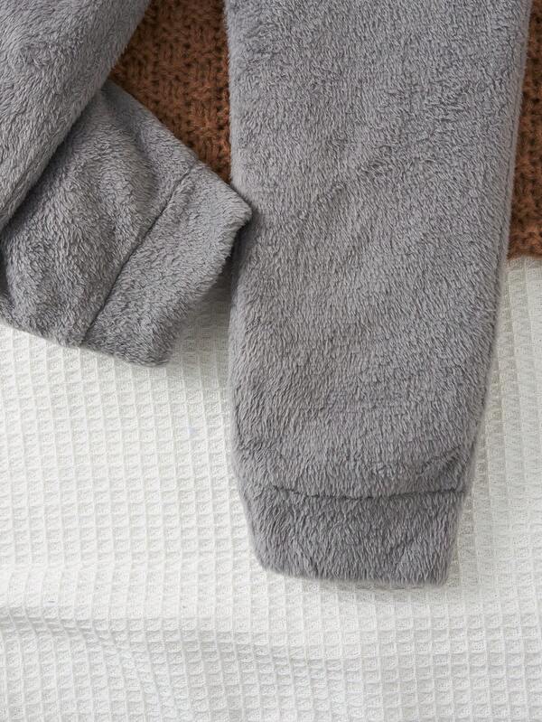 SHEIN Young Boy Solid 3D Ear Design Hooded Pajama Set