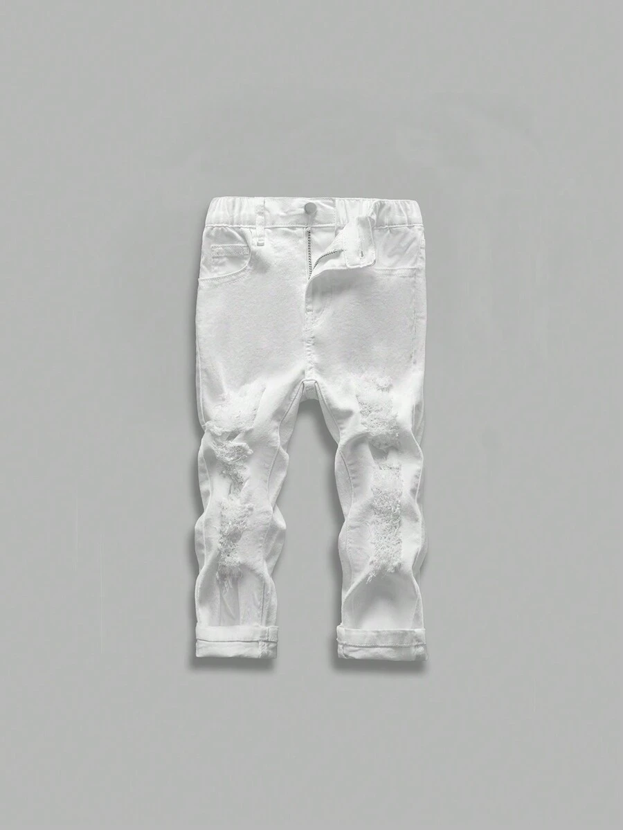 Young Boy Solid Ripped Jeans