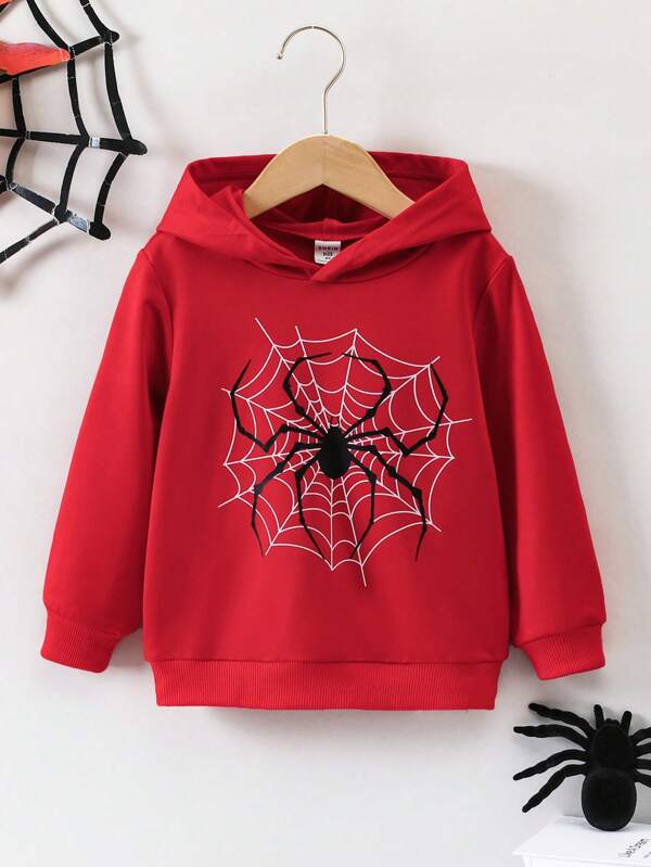 SHEIN Kids HYPEME Young Boy Spider Web Print Hoodie