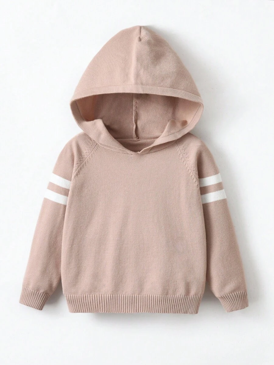Young Boy Stripe Pattern Raglan Sleeve Hooded Sweater