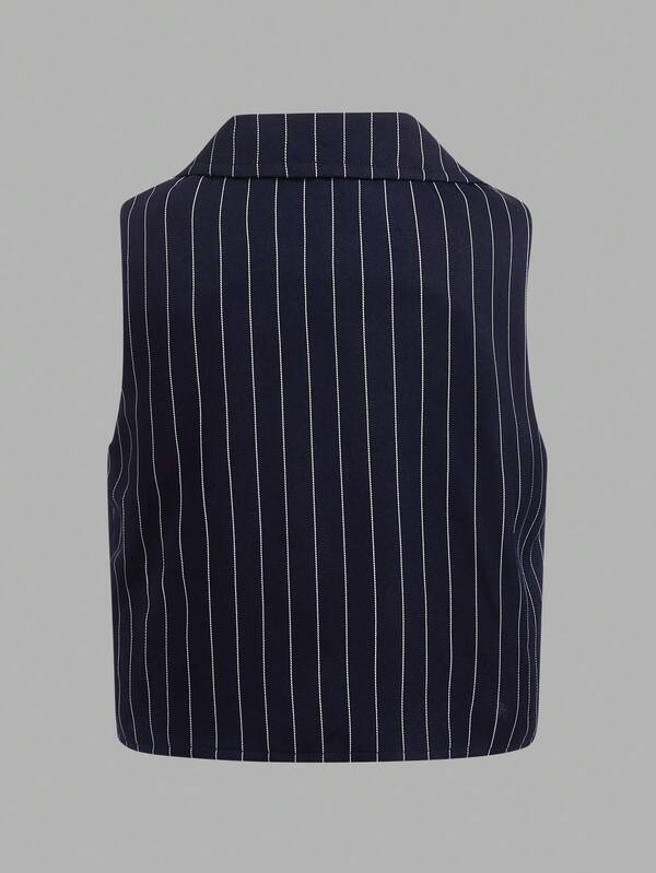 SHEIN Kids FANZEY Young Boy Striped Blazer Vest & Pants & Bow Front Shirt