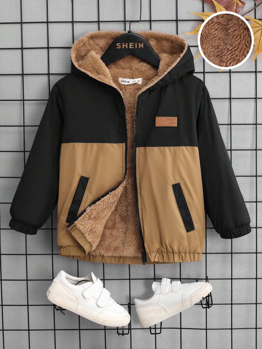 SHEIN Young Boy Two Tone Teddy Lined Hooded Jacket