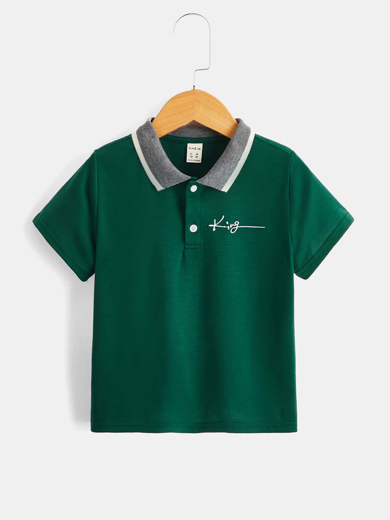 SHEIN Kids Academe Young Boys' Short Sleeve Polo Shirt With English Letter Embroidery And Green Patchwork, Suitable For Daily Wear In Spring And Summer