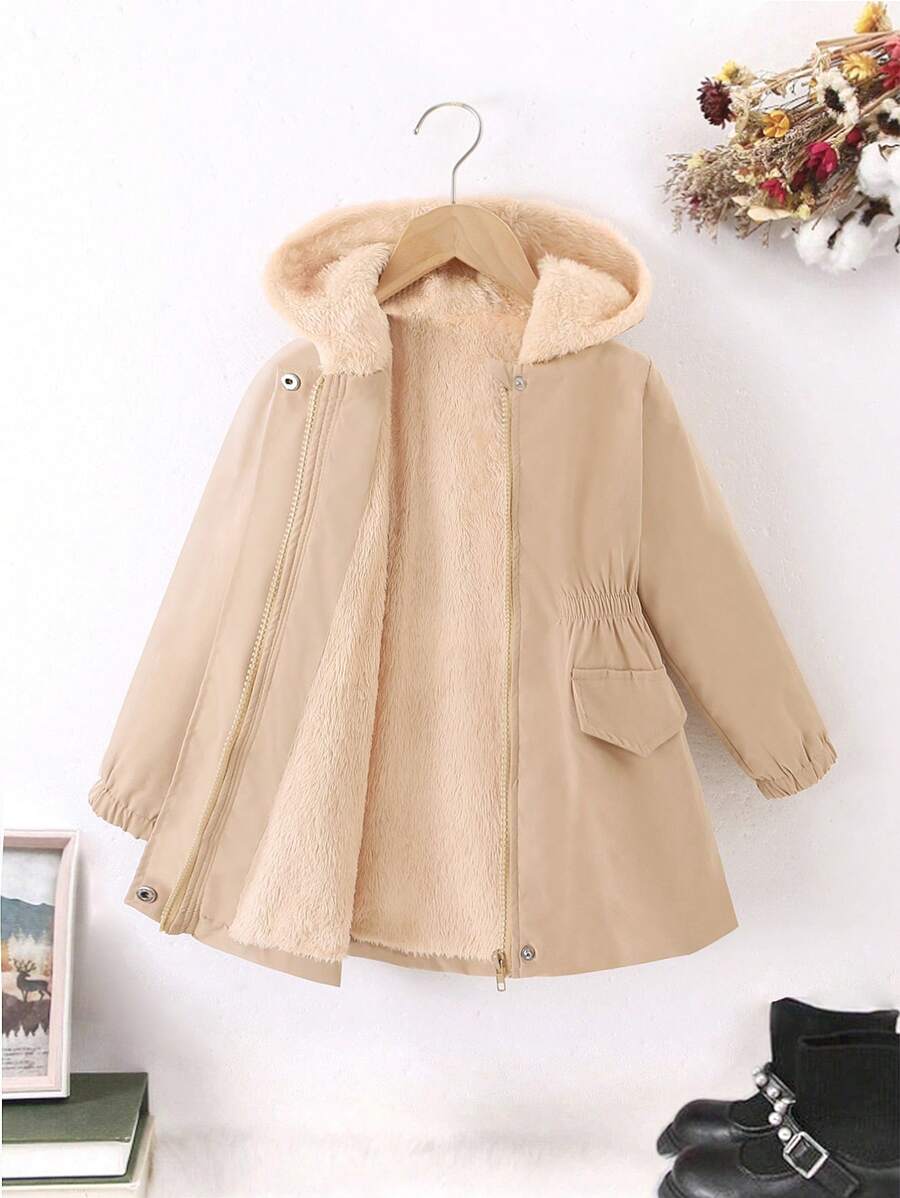 Young Girl 1pc Zip Up Hooded Thermal Lined Coat