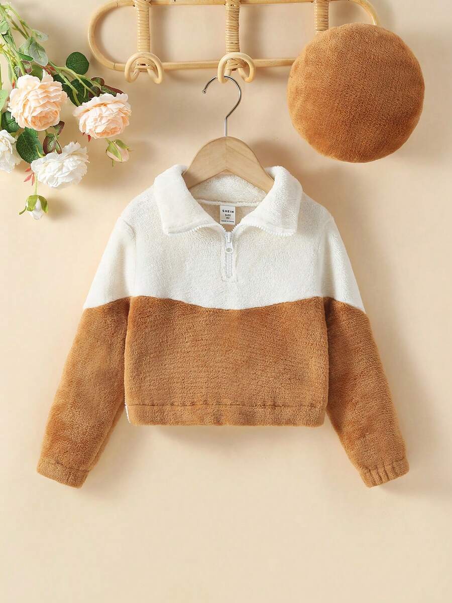Young Girl 2pcs Half Zipper Plaid Fleece Fabric Hoodie Set For Autumn And Winter
