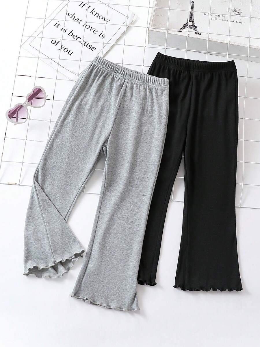 Young Girl 2pcs Lettuce Trim Flare Leg Pants