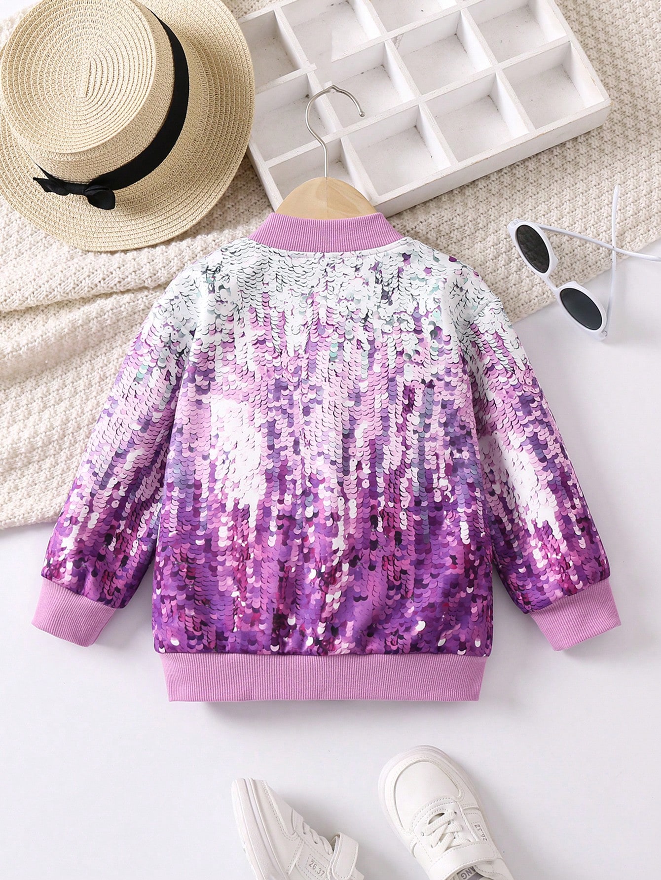Young Girl 3D Sequin Effect Bomber Jacket