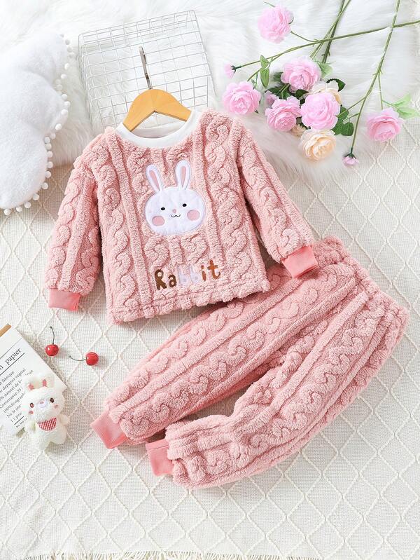 Young Girl Cartoon Embroidery Flannel PJ Set