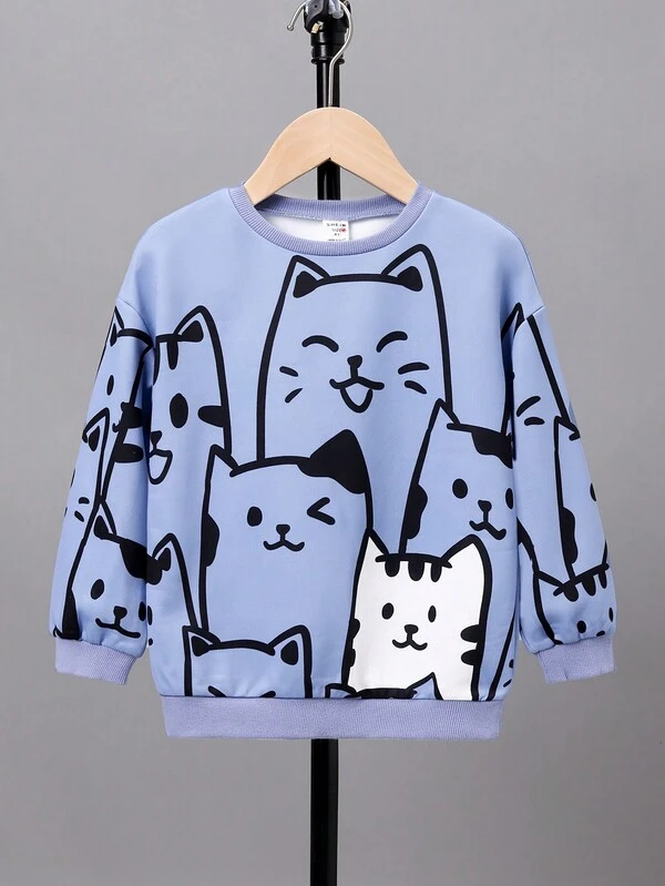 SHEIN Kids QTFun Young Girl Cartoon Graphic Drop Shoulder Sweatshirt