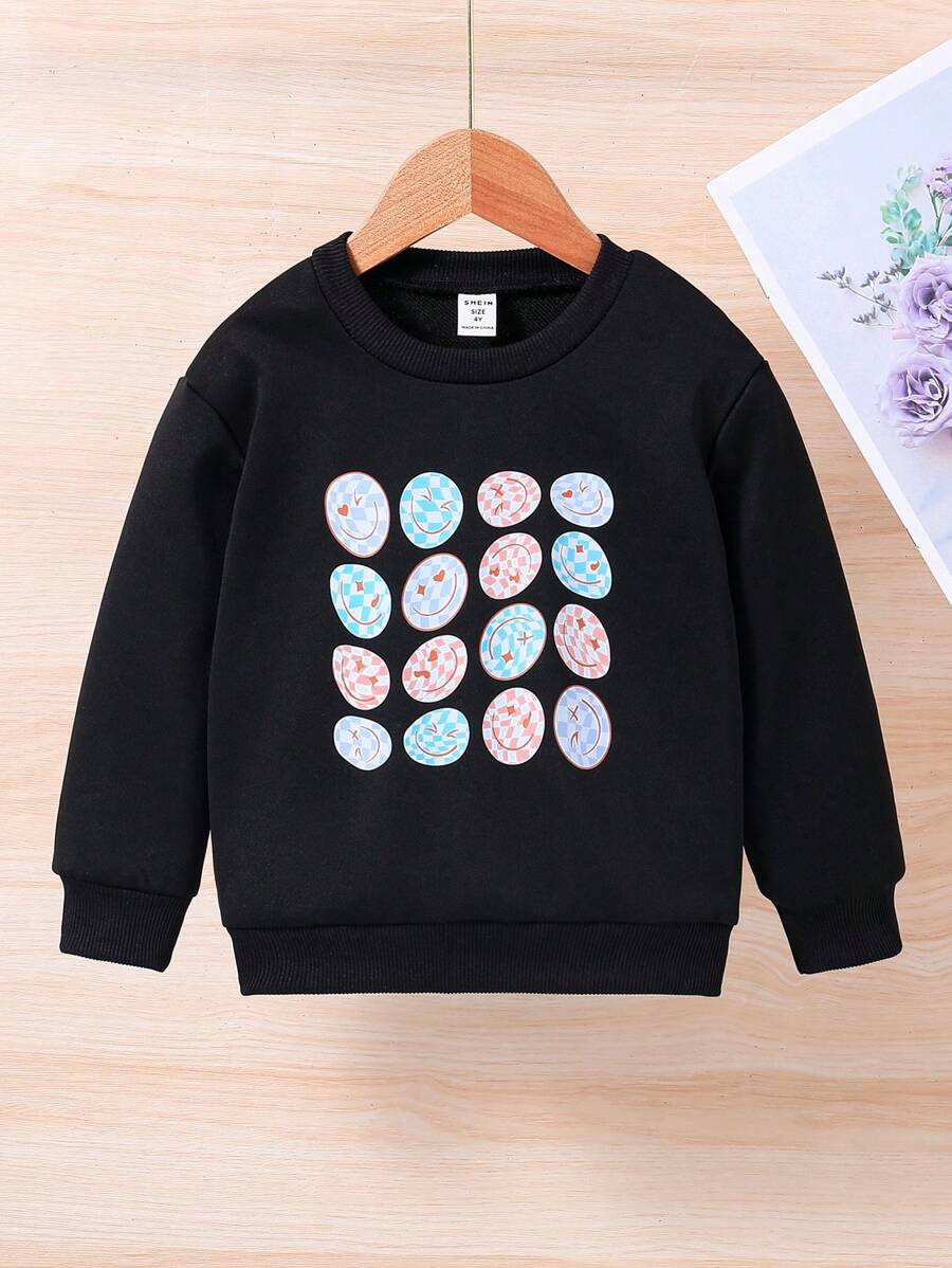 Young Girl Cartoon Graphic Thermal Lined Sweatshirt
