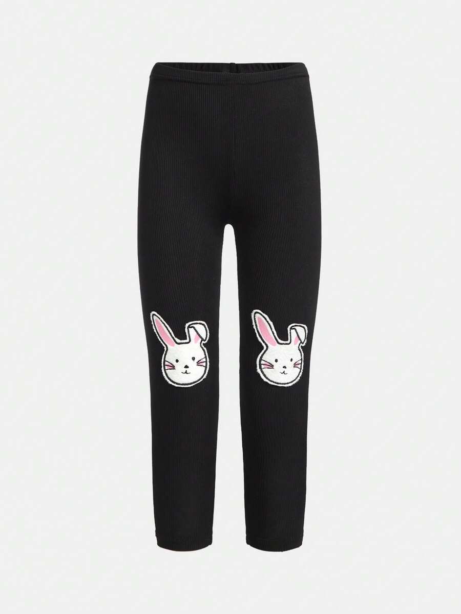 Young Girl Cartoon Patched Leggings