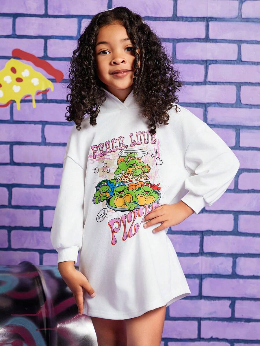 TEENAGE MUTANT NINJA TURTLES X SHEIN Young Girl Cartoon Print Hooded Dress