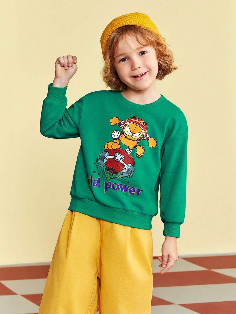 GARFIELD X SHEIN Young Girl Cartoon Printed Round Neck Sweatshirt