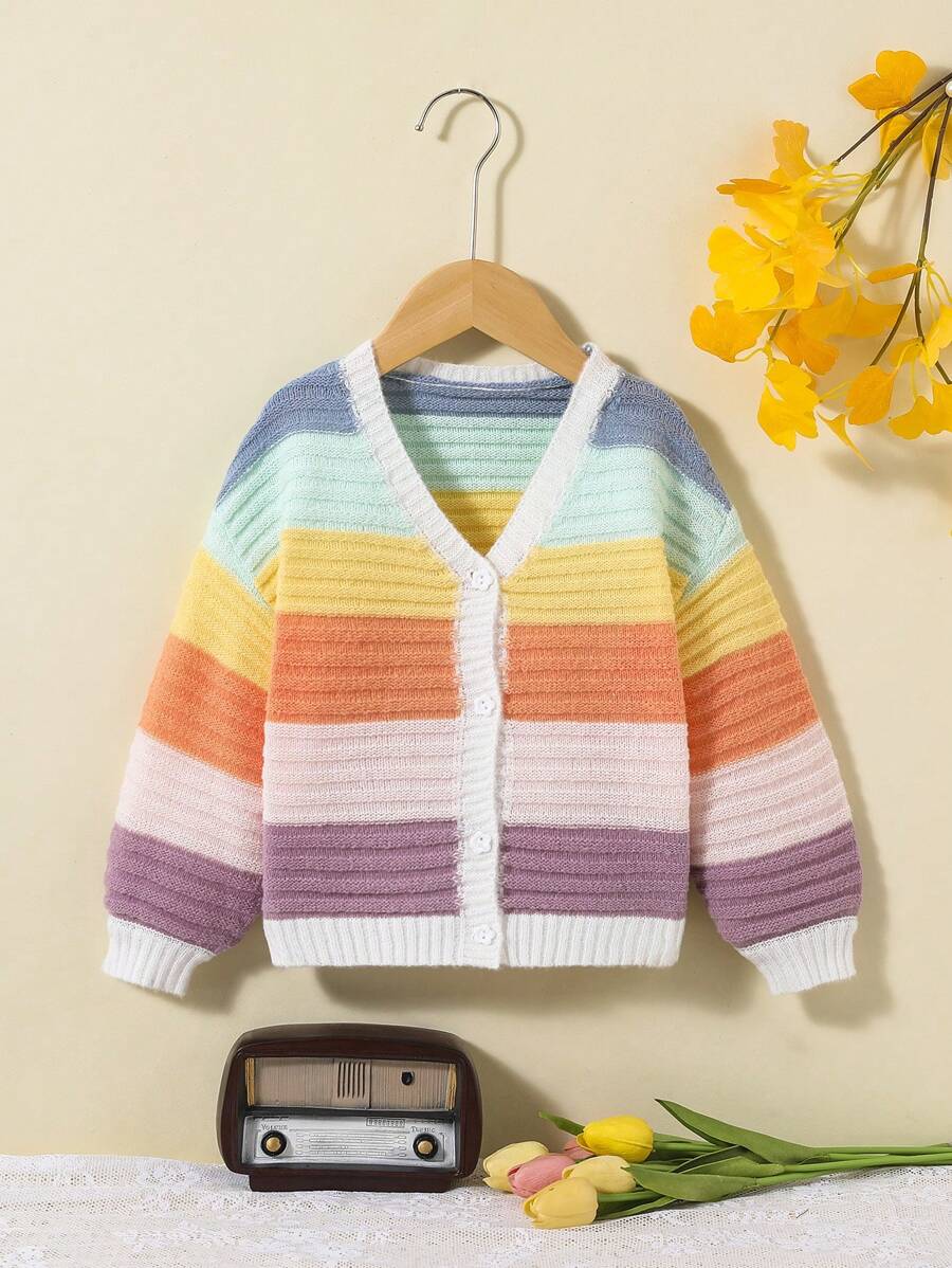 SHEIN Young Girl Color Block Drop Shoulder Cardigan