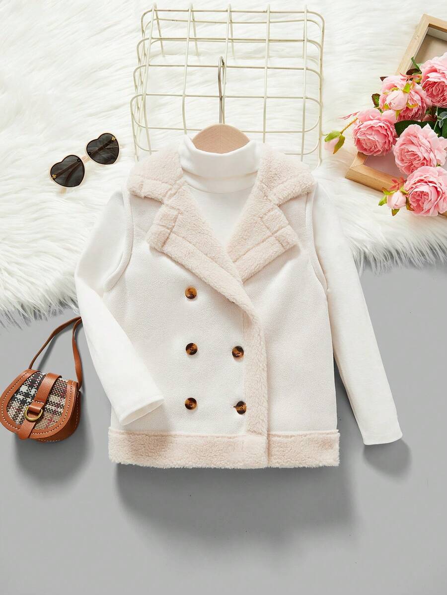 SHEIN Kids FANZEY Young Girl Double Breasted Teddy Lined Vest Coat Without Sweater