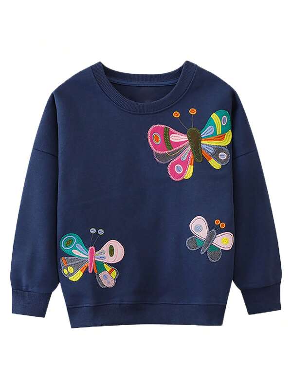 Young Girl Embroidery Butterfly Pattern Drop Shoulder Sweatshirt