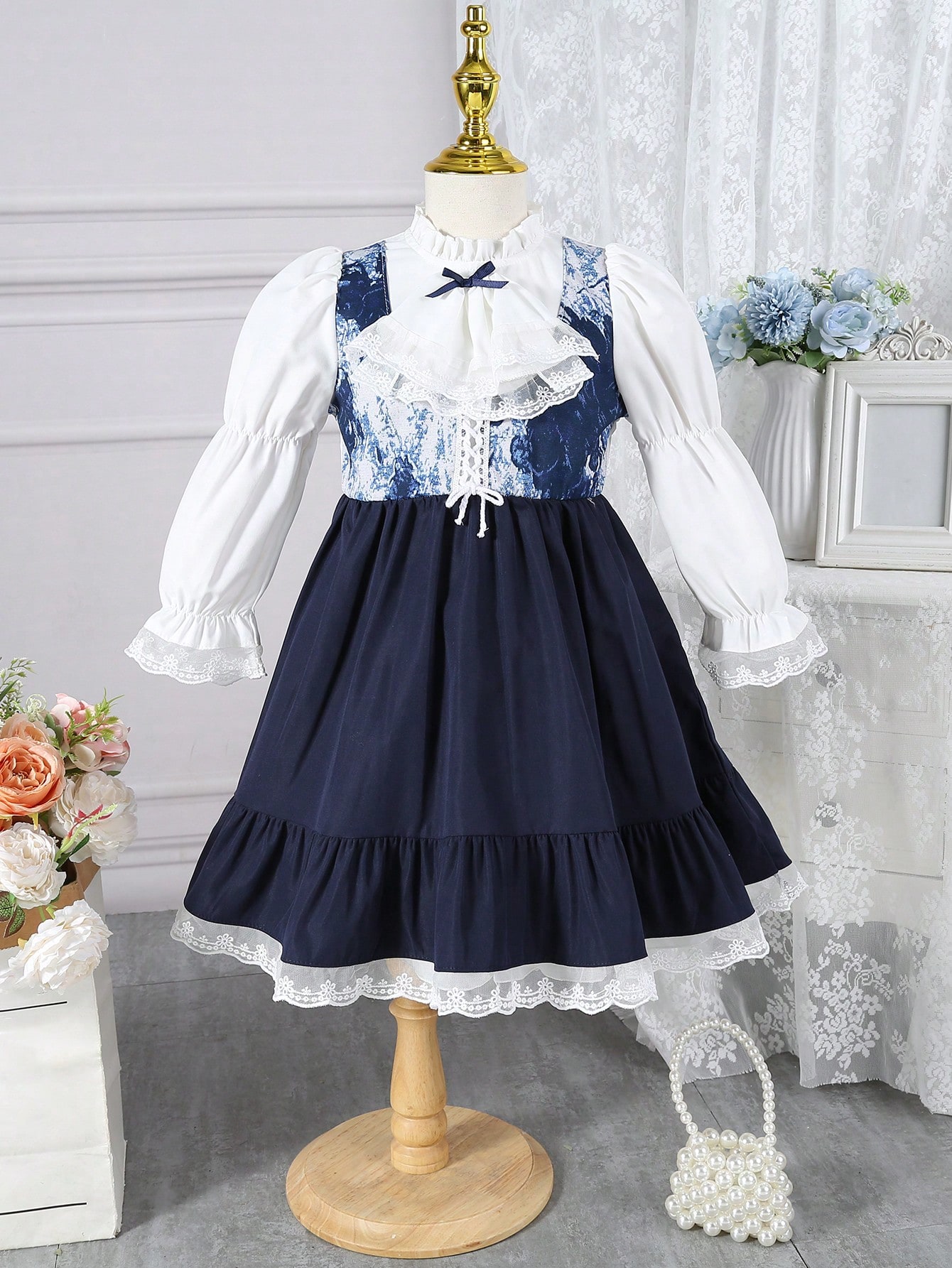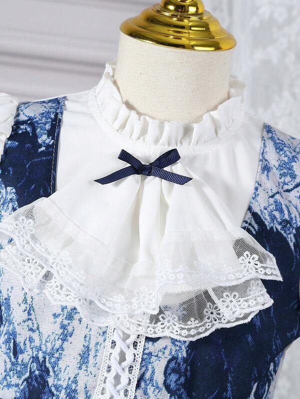 Young Girl Flare Sleeve Ruffle Hem 2 In 1 Dress