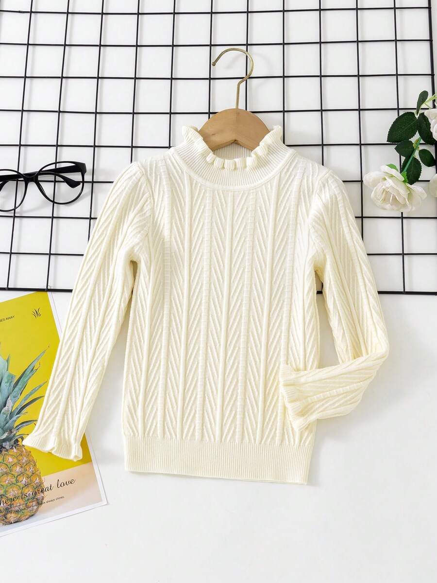 Young Girl Frill Trim Textured Knit Sweater