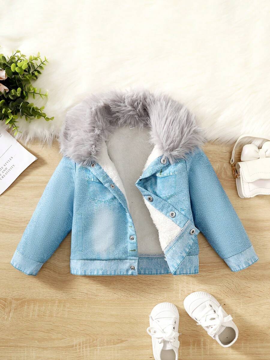 Young Girl Fuzzy Trim Teddy Lined Hooded Jacket