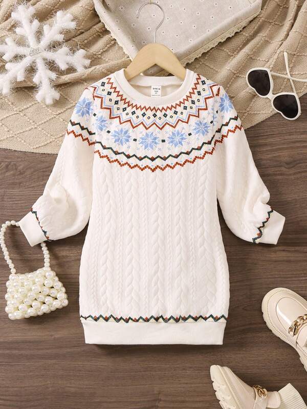 SHEIN Kids EVRYDAY Young Girl Geo Print Sweatshirt Dress