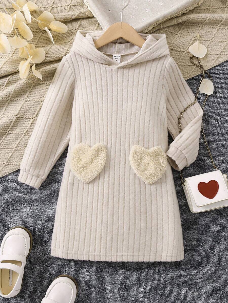 Young Girl Heart Patched Hooded Dress