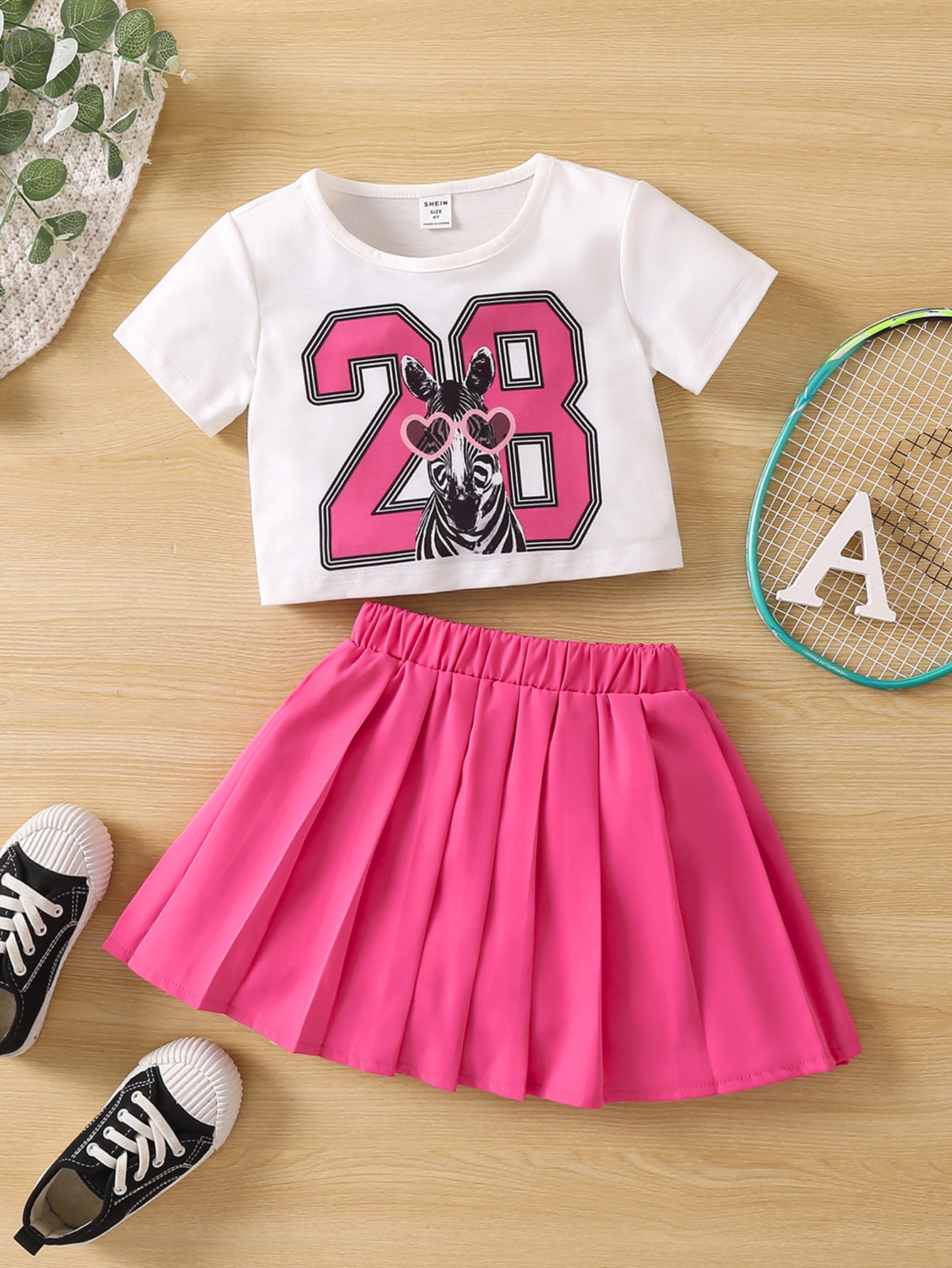 SHEIN Kids EVRYDAY Young Girl Letter & Animal Print Sports & Casual Round Neck Regular Sleeve 2-piece Set For Summer