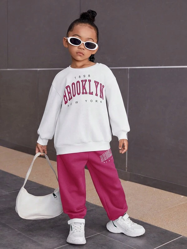 SHEIN Young Girl Letter Graphic Drop Shoulder Sweatshirt & Sweatpants