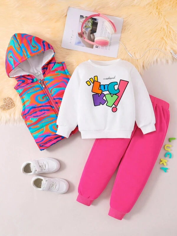 Young Girl Letter Graphic Hoodie & Sweatpants & Letter Graphic Hoodie