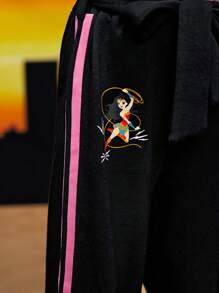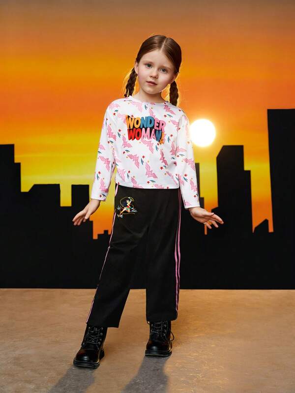 WONDER WOMAN X SHEIN Young Girl Letter Graphic Tee & Side Stripe Pants