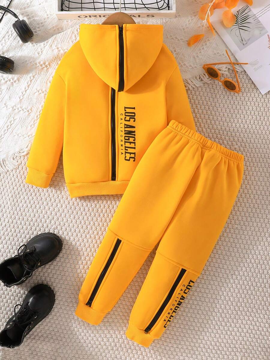 Young Girl Letter Graphic Zip Up Hoodie & Sweatpants