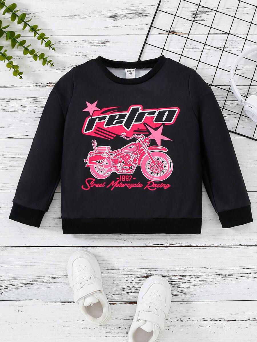 Young Girl Motorcycle & Letter Graphic Sweatshirt
