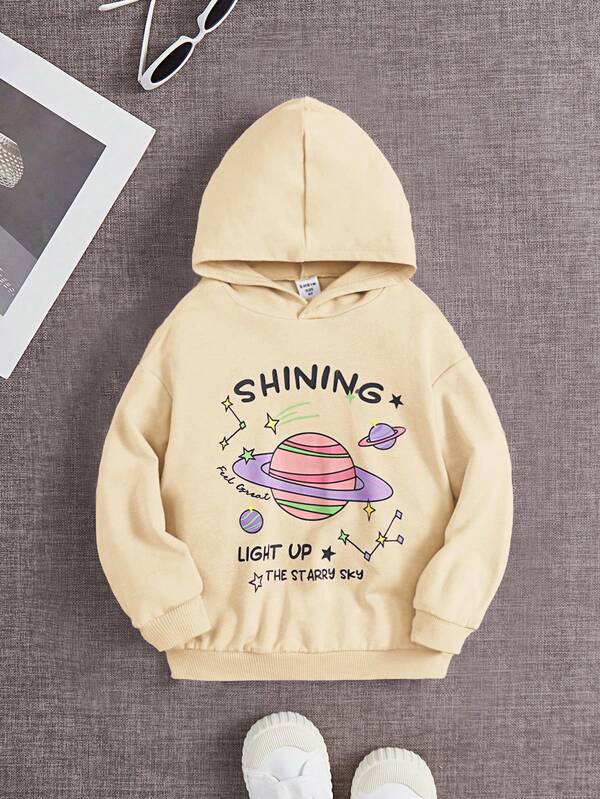 SHEIN Kids EVRYDAY Young Girl Planet & Slogan Graphic Hoodie