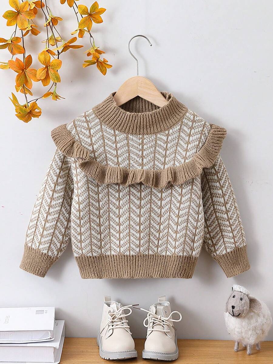 Young Girl Ruffle Trim Mock Neck Sweater