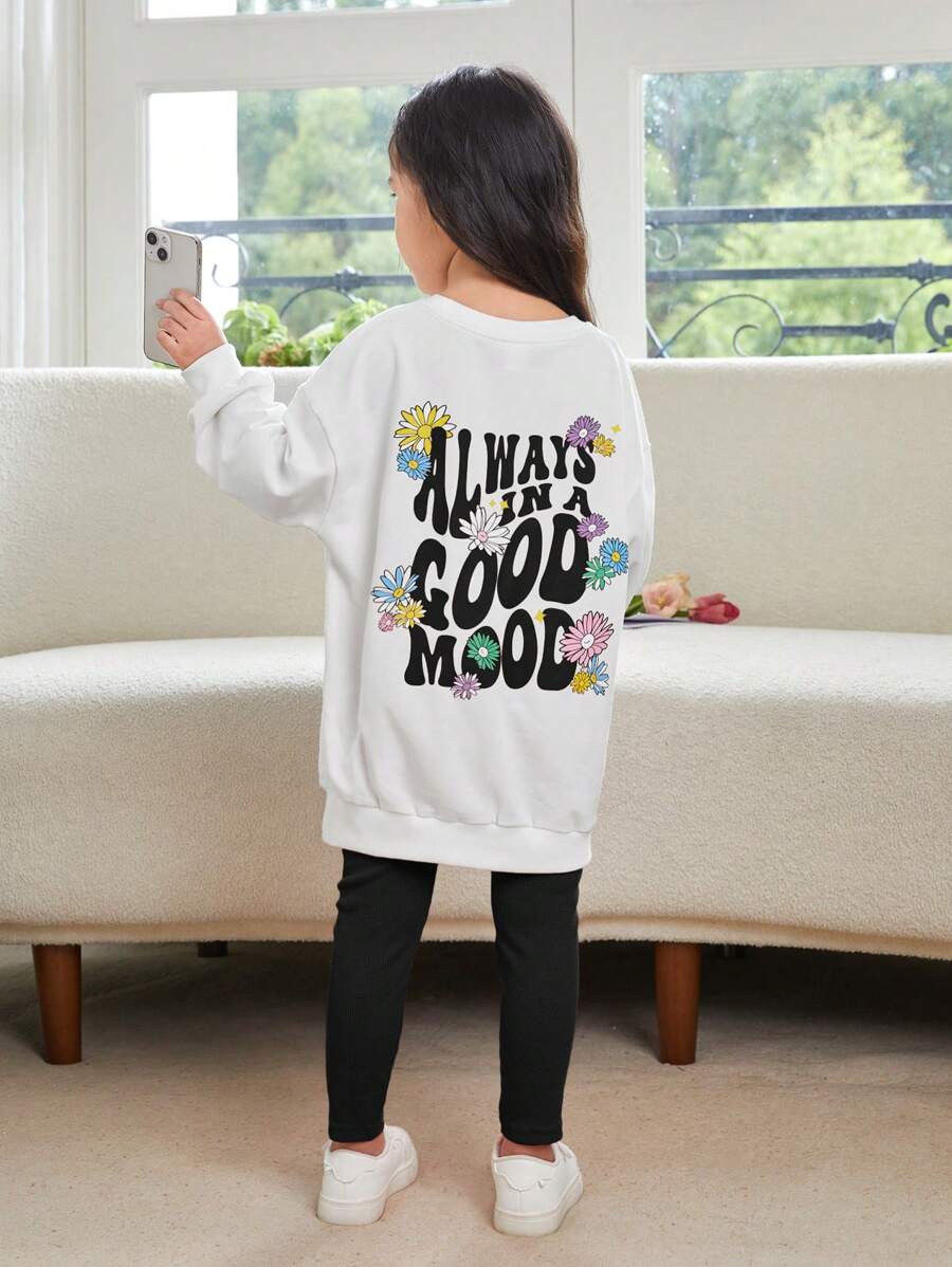 SHEIN Young Girl Slogan Graphic Drop Shoulder Sweatshirt & Leggings