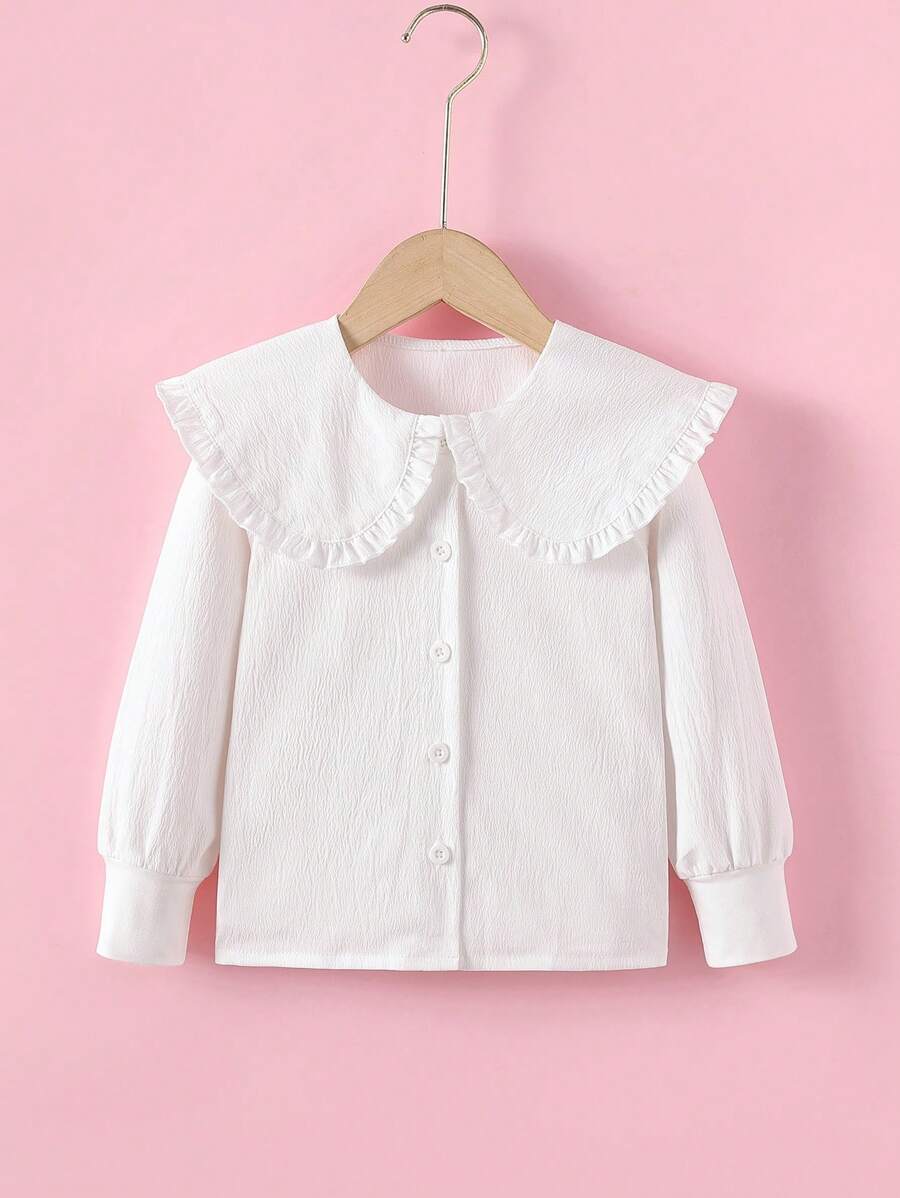 SHEIN Kids EVRYDAY Young Girl Statement Collar Frill Trim Button Front Shirt
