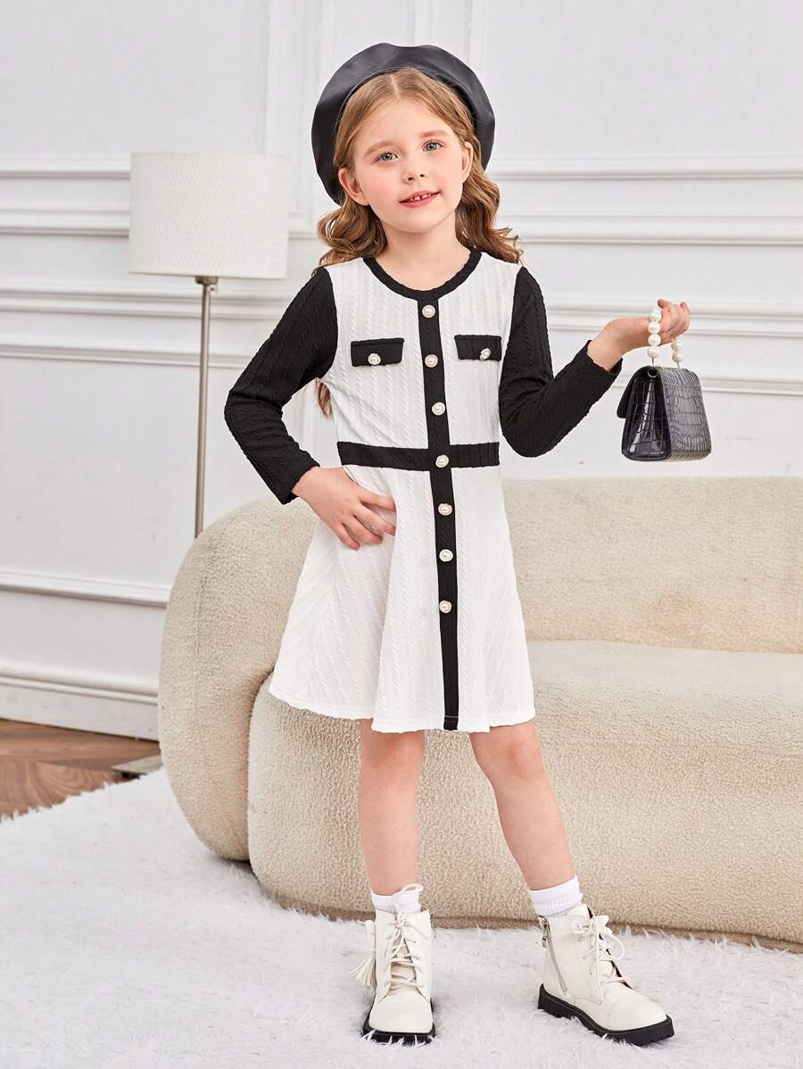 SHEIN Kids HYPEME Young Girl Two Tone Button Front Dress