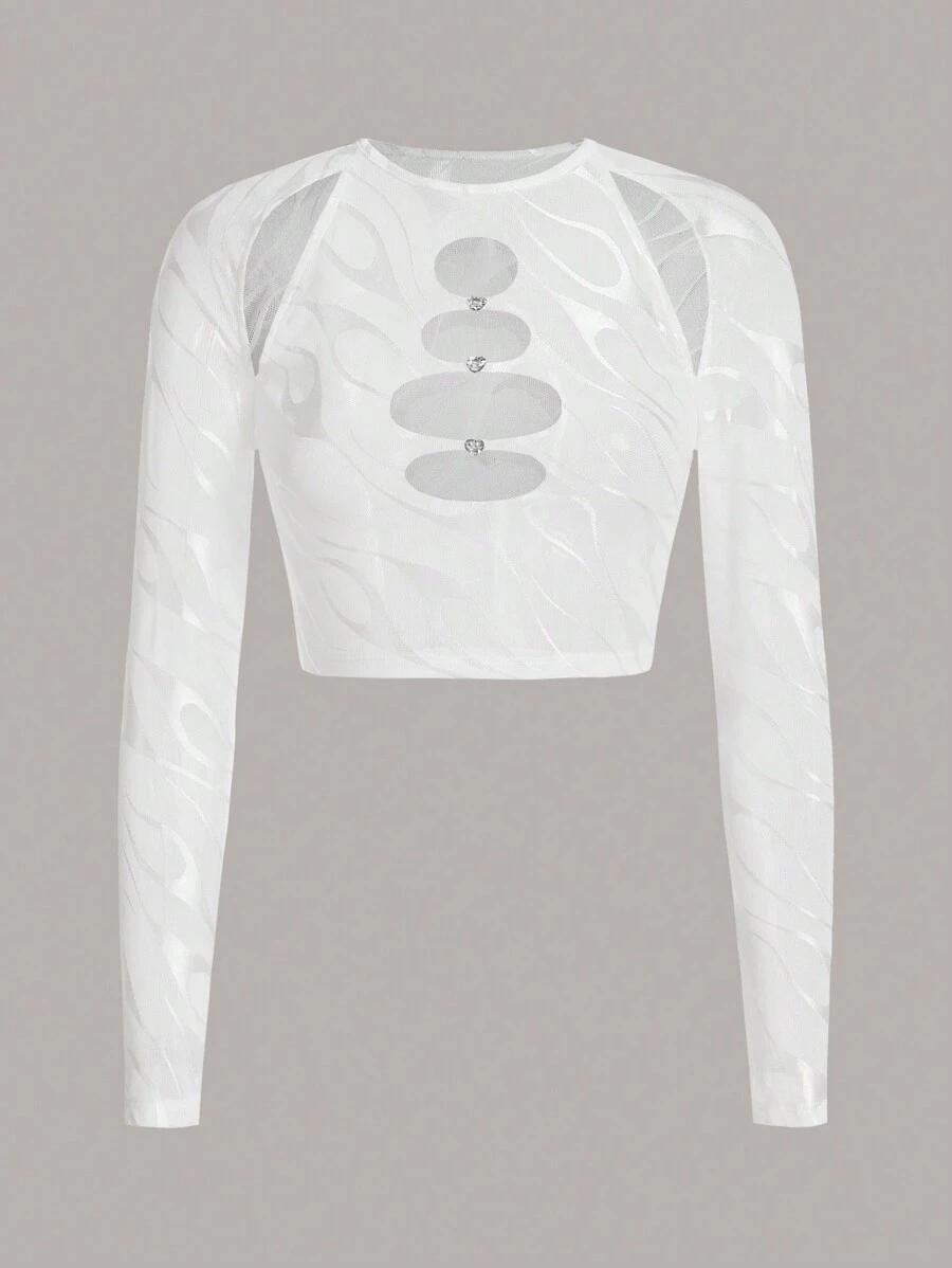SHEIN ICON Zebra Patterned Sheer Top With Rhinestone Detailing On Cut-Outs