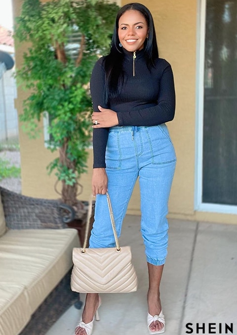 SHEIN Essnce Zip Half Placket Rib-knit Tee