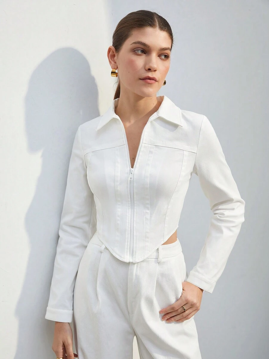 SHEIN BIZwear Zip Up Asymmetrical Hem Crop Jacket