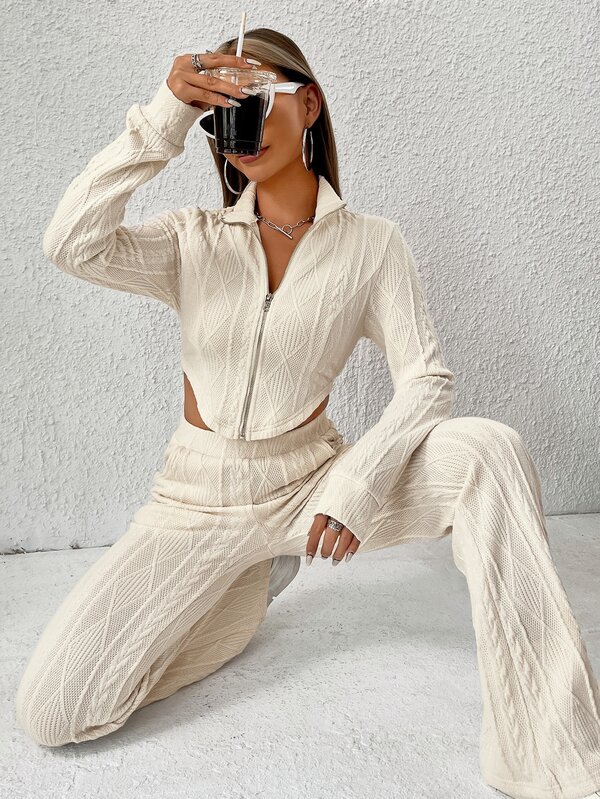 SHEIN EZwear Zip Up Asymmetrical Hem Crop Sweatshirt