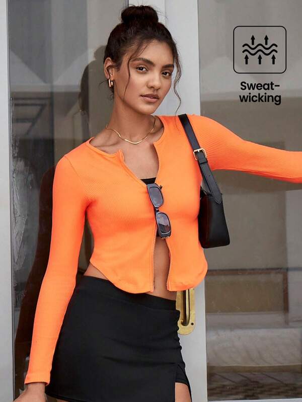 SHEIN Leisure Zip Up Curved Hem Sports Jacket cropped jacket
