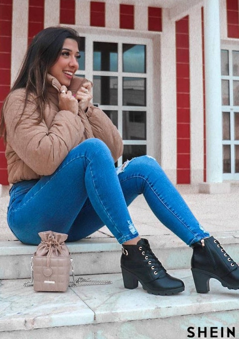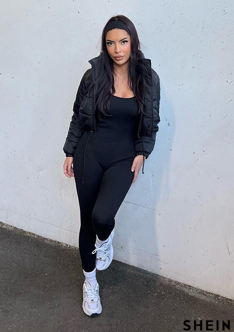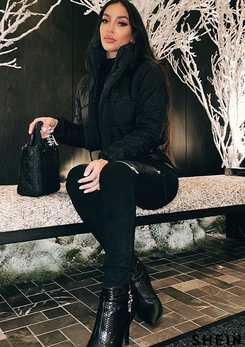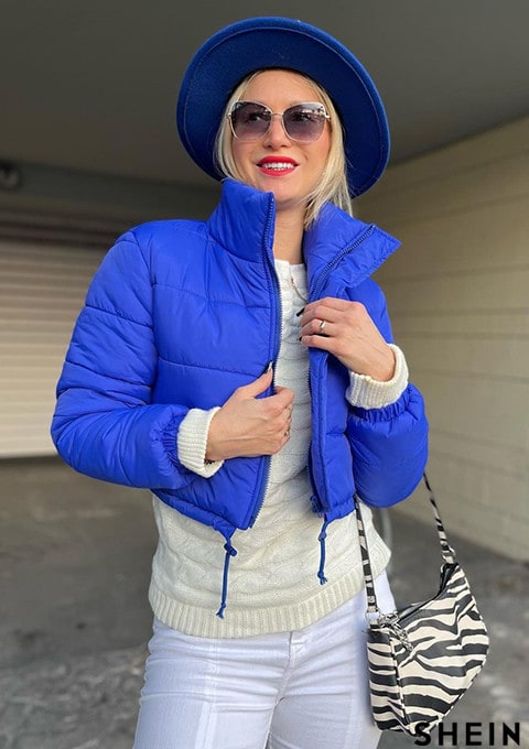SHEIN SXY Zip Up Drawstring Crop Puffer Coat