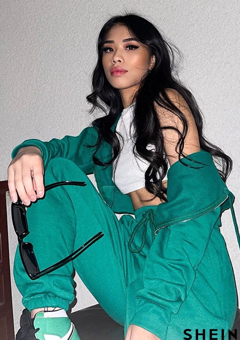 SHEIN EZwear Zip Up Drawstring Hoodie & Sweatpants